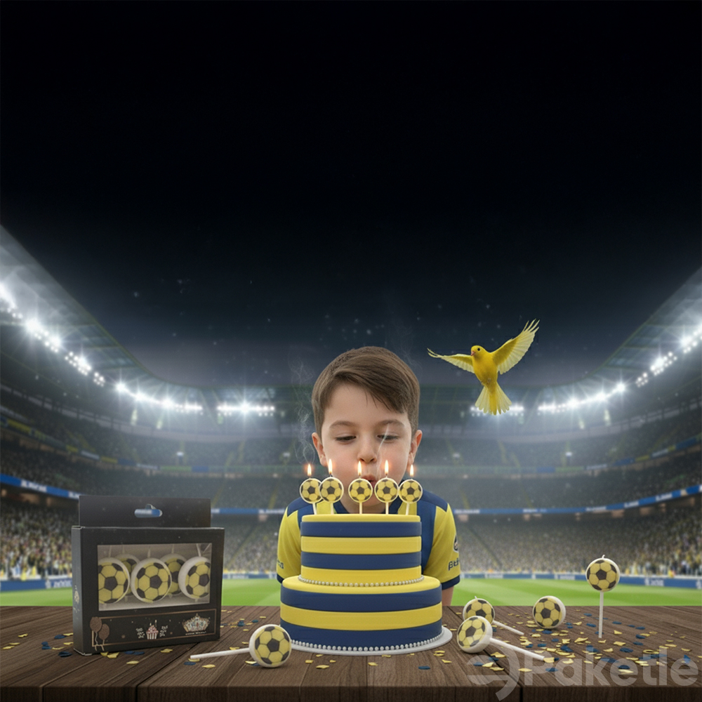 Fenerbahçeli taraftarlara özel tasarlanan futbol topu şeklinde pasta mumları, doğum günü kutlamalarını sarı-lacivert renklere boyuyor! 5’li set halinde sunulan bu özel mumlar, çocukların ve yetişkinlerin pastalarına Fenerbahçe ruhunu taşıyor. Taraftar konseptli doğum günü organizasyonları için ideal bir detay olan bu mumlar, hem şık hem de anlamlı bir atmosfer oluşturur.