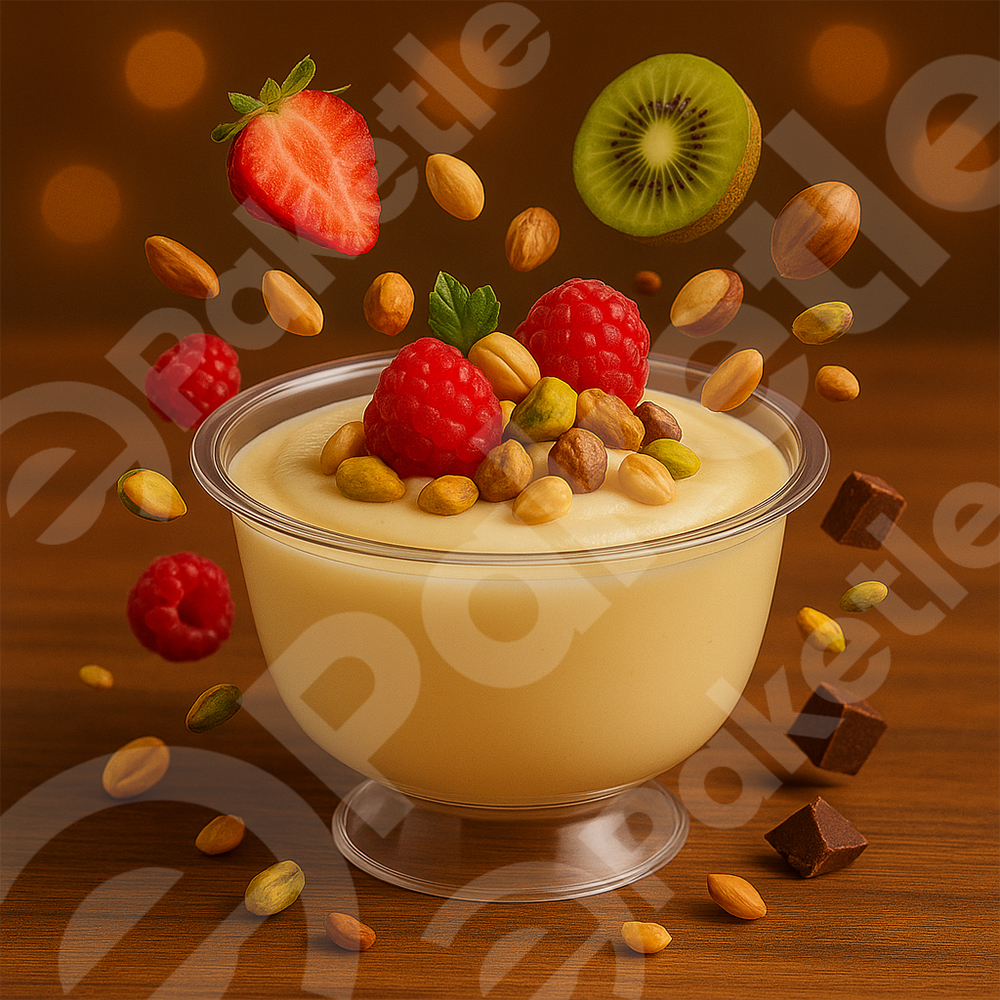 Her bir paket içinde 25 adet kase bulunur. 220 cc hacmi sayesinde porsiyon tatlı sunumları için uygundur.