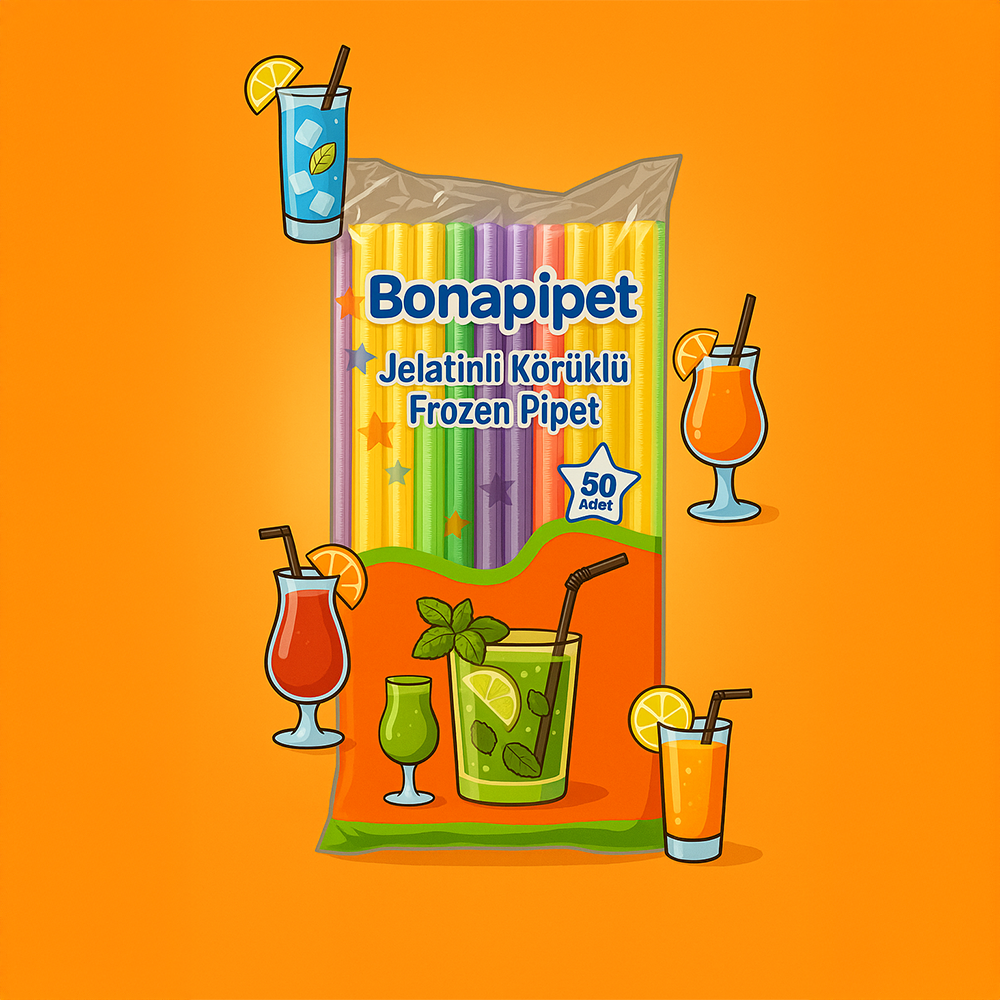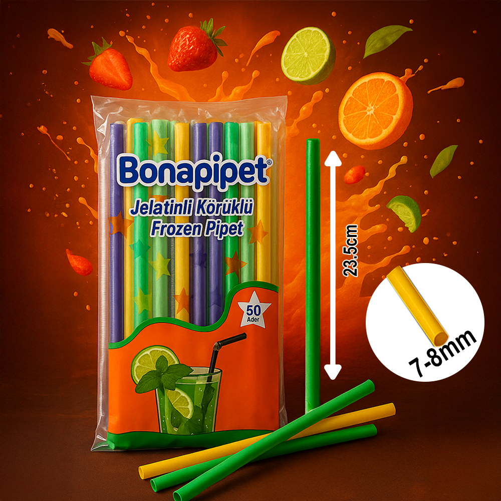 Bonapipet Jelatinli Körüklü Frozen Pipet, özellikle smoothie, milkshake ve frozen gibi yoğun içecekler için tasarlanmış, dayanıklı ve hijyenik bir çözümdür.