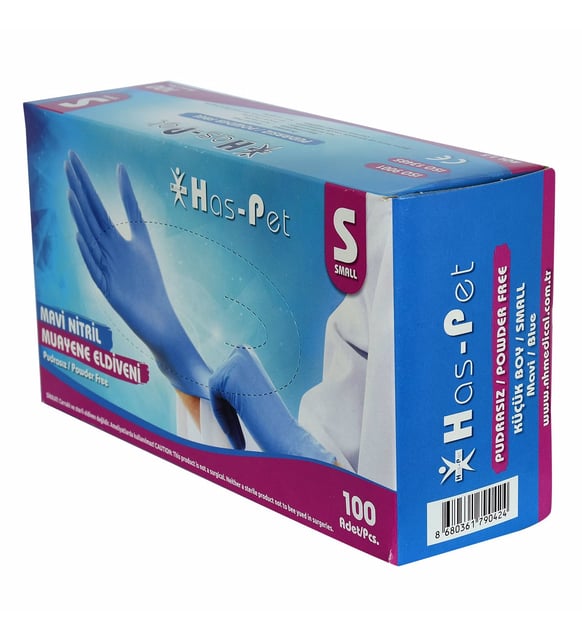 Has-Pet Pudrasız Mavi Nitril Eldiven Küçük Boy (S) 100’lü Paket