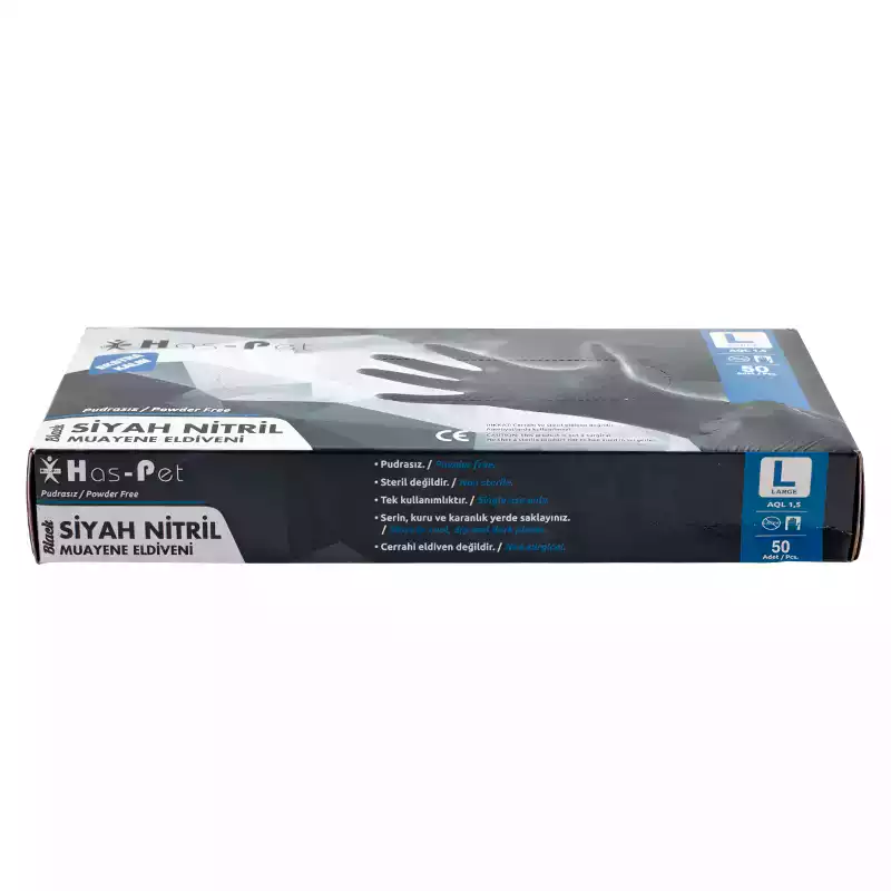 Haspet Kalın Siyah Nitril Large Pudrasız Eldiven – 50’li (L )