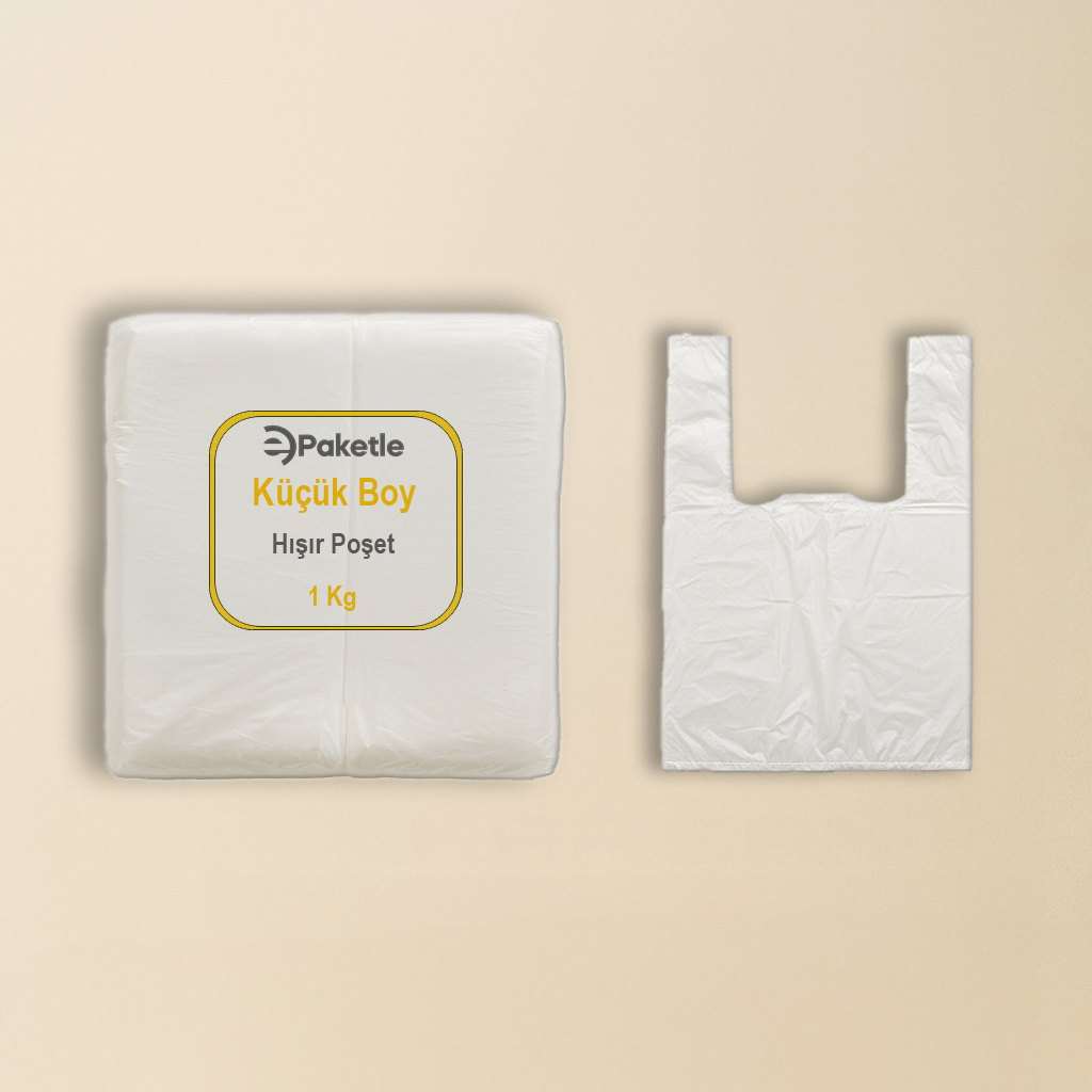 Küçük Boy Hışır Atlet Poşet, adetli ve 1 kilogramlık paketlerde satışa sunulan, günlük taşımalar için ideal ekonomik poşet çözümüdür. Atlet tipi (kulplu) tasarımı ile rahat taşıma imkânı sunar.