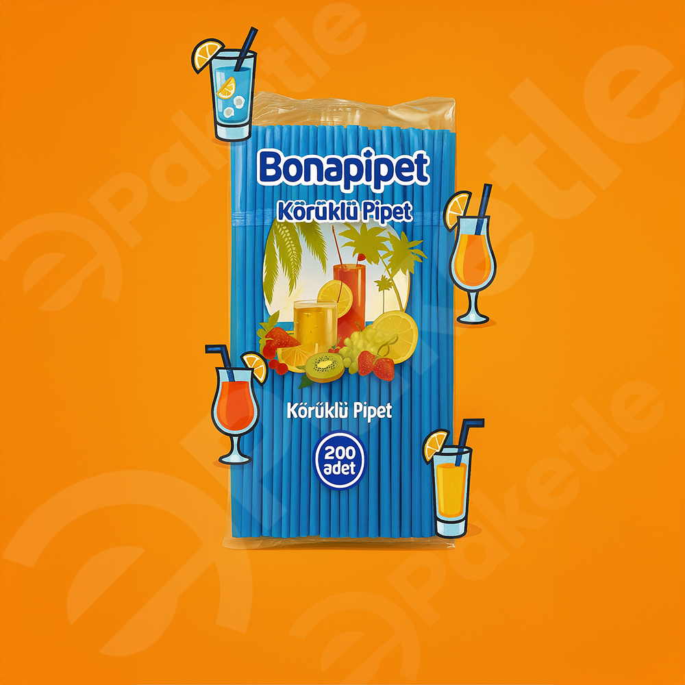 Kağıt Ambalajlı Pipet 19 cm | 200’lü Paket – 25 Paketlik Koli (5.000 Adet)