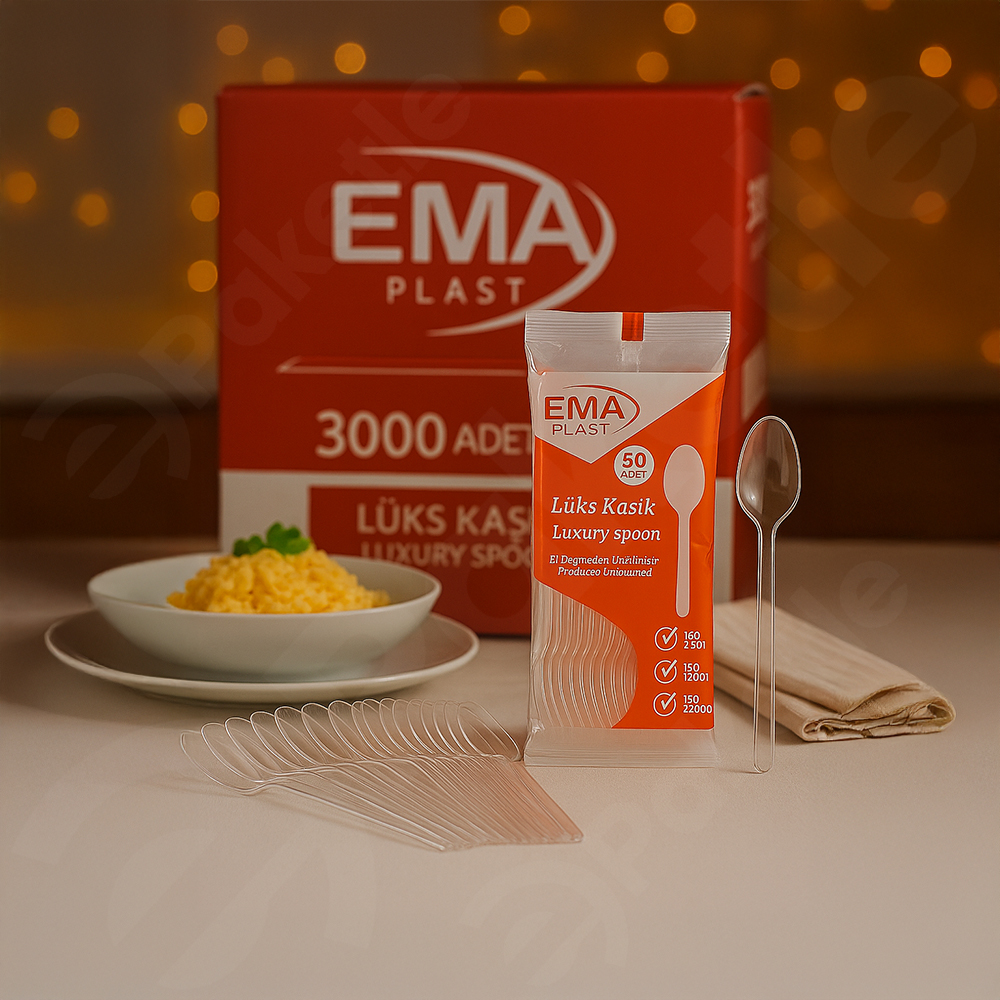 Lüks Şeffaf Plastik Kaşık | 50’li Paket – 3.000 Adetlik Koli | Sert Malzeme –Minimum 2Paket(100 Adet) Sipariş