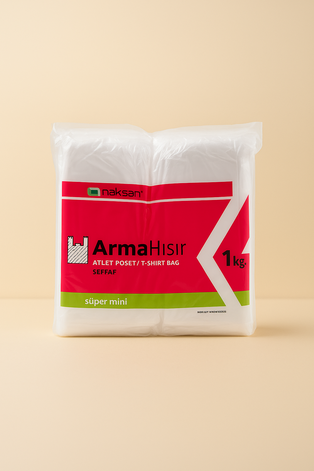 Naksan Arma Süper Mini Boy Atlet Poşet, düşük hacimli taşımalar için ideal, kulplu (atlet tip) tasarıma sahip, ekonomik ve pratik bir ambalaj çözümüdür.