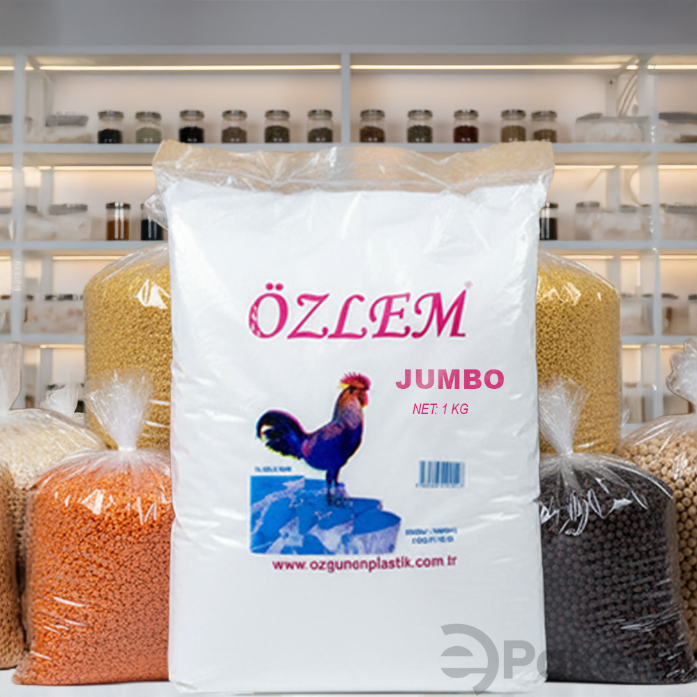 Özgüven Bakkaliye Naylon Torba Jumbo, büyük hacimli alışverişler ve ağır ürünlerin taşınması için özel olarak üretilmiştir. Net 1 Kg içeriğiyle hem esnaflar hem de ev kullanıcıları için ekonomik ve güvenilir bir çözümdür.