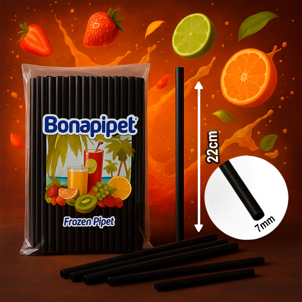 Siyah Frozen Pipet 22 cm, özellikle milkshake, smoothie ve frozen gibi yoğun içecekler için özel olarak tasarlanmıştır.