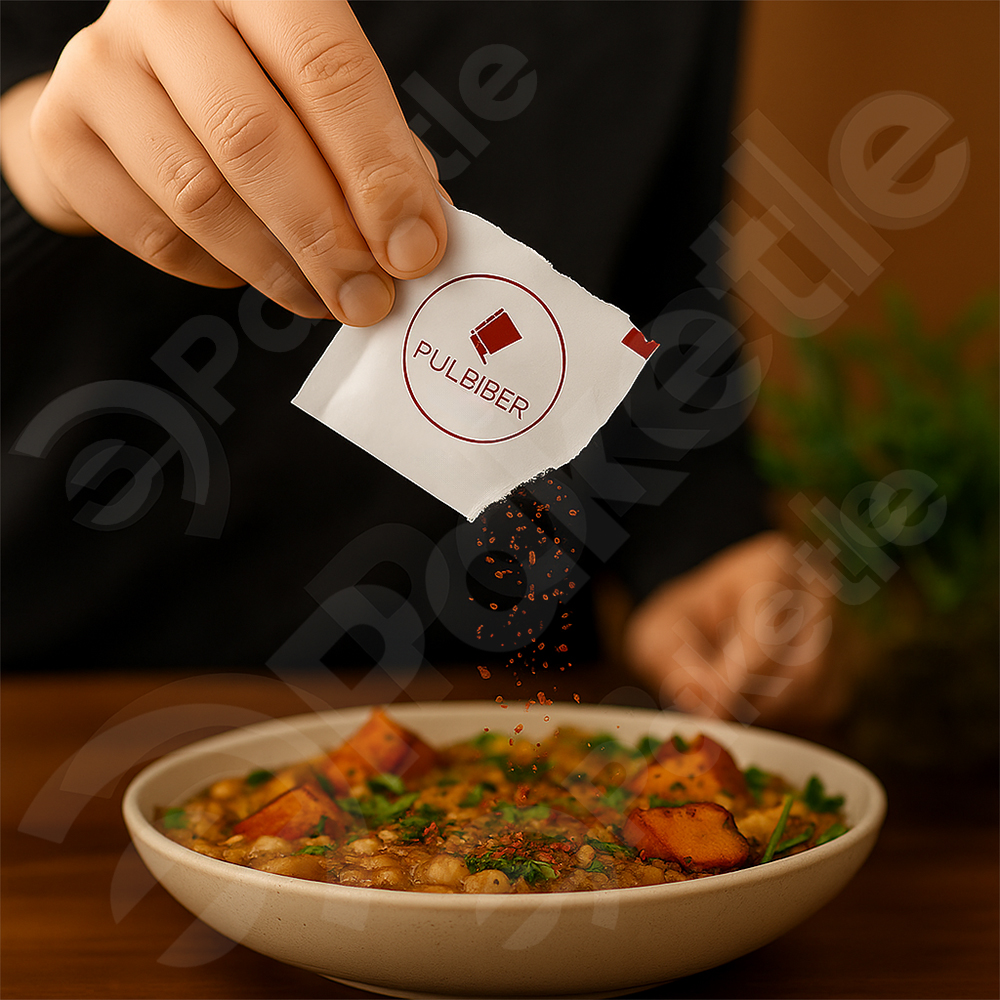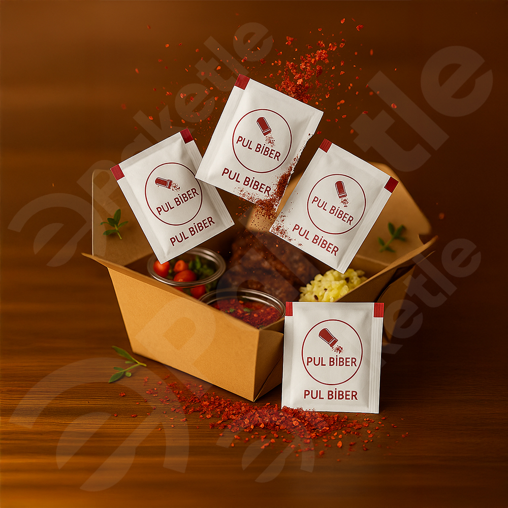 Stick Pul Biber, 5×5 cm ölçülerinde kare formda, kağıt ambalajlı ve ortalama 1 gr pul biber içeren tek kullanımlık baharat paketidir. Paket servislerde, restoran ve kafelerde yemeklerin yanında pratik kullanım sağlar. Ayrıca fabrika yemekhaneleri ve catering mutfaklarında hijyenik, ekonomik ve pratik baharat çözümü sunar. 1000’li koli halinde toplu kullanıma uygundur.