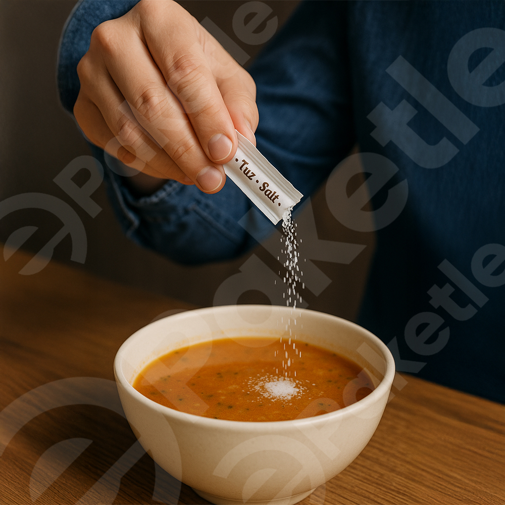 Stick Tuz, hijyenik kağıt ambalajlı tek kullanımlık tuz paketlerinden oluşur. Her paket brüt 700 gr ağırlığındadır ve ortalama 300–350 adet stick tuz içerir. Kullan-at özelliği sayesinde pratik ve hijyenik kullanım sağlar. Cafe, restoran, büfe ve otellerde self-servis alanlarda en çok tercih edilen ürünlerden biridir. 20’li koli halinde ekonomik toplu alım avantajı sunar.