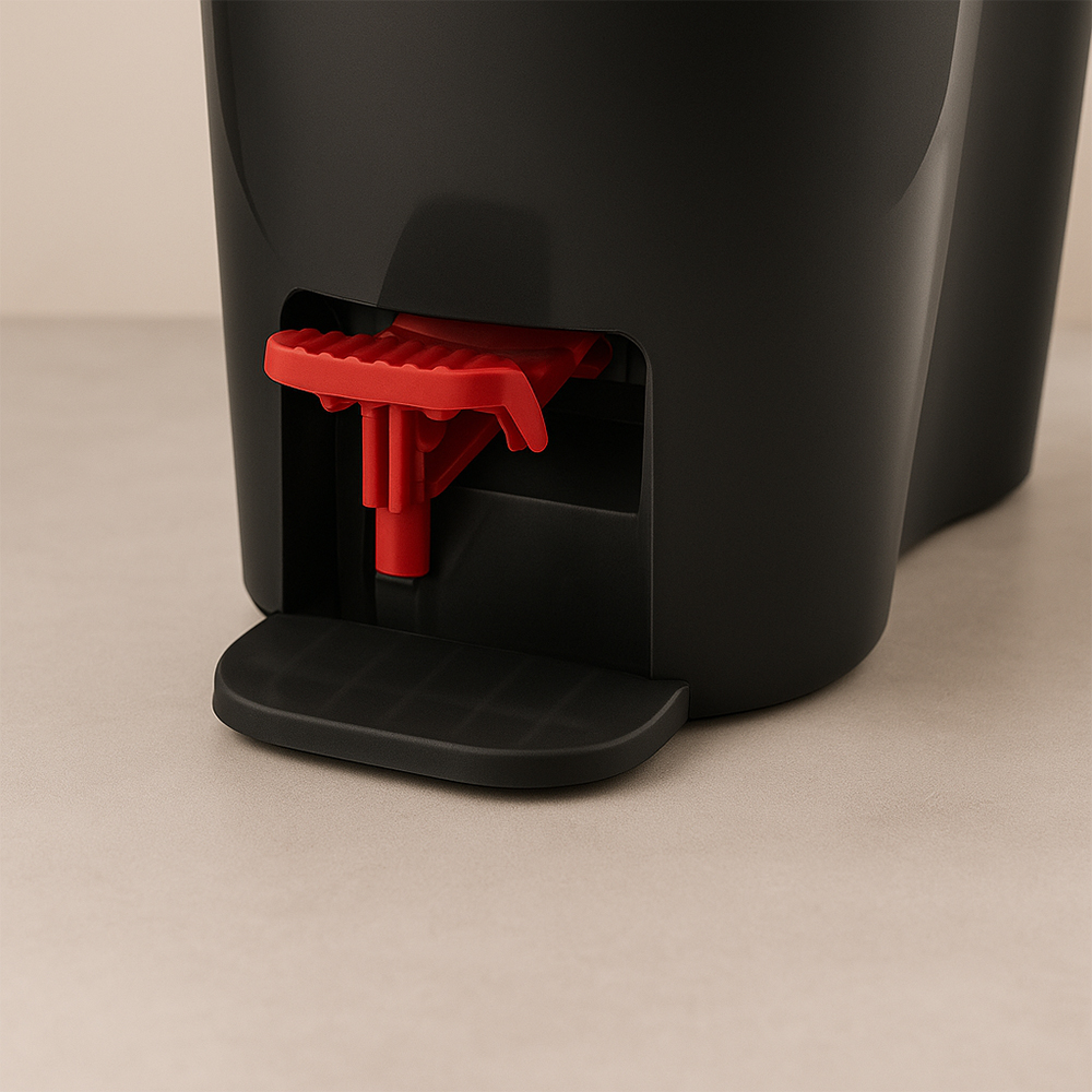 Pedallı sıkma sistemi sayesinde ellerinizi ıslatmadan mopunuzu kolayca sıkabilir, su sıçramadan temizlik yapabilirsiniz.