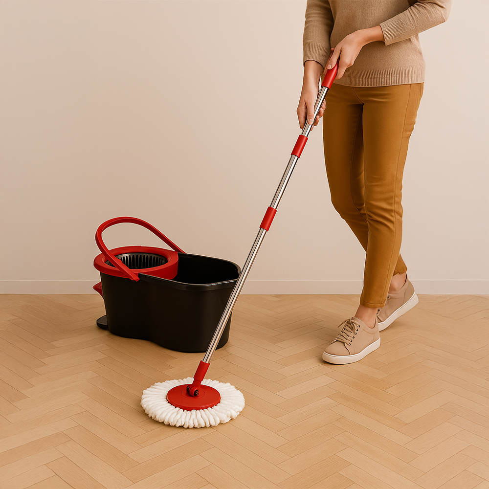 Twin Turbo Pedallı Yer Silme Temizlik Seti, pratik kullanımı ve çift fonksiyonlu tasarımı sayesinde temizlik işini kolaylaştırır.