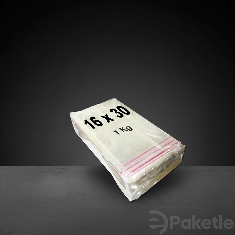 Yapışkan Bantlı OPP Jelatin Torba 16×30 cm – Kapalı 16×25 cm – Şeffaf Ambalaj Poşeti (500 g / 1 kg)