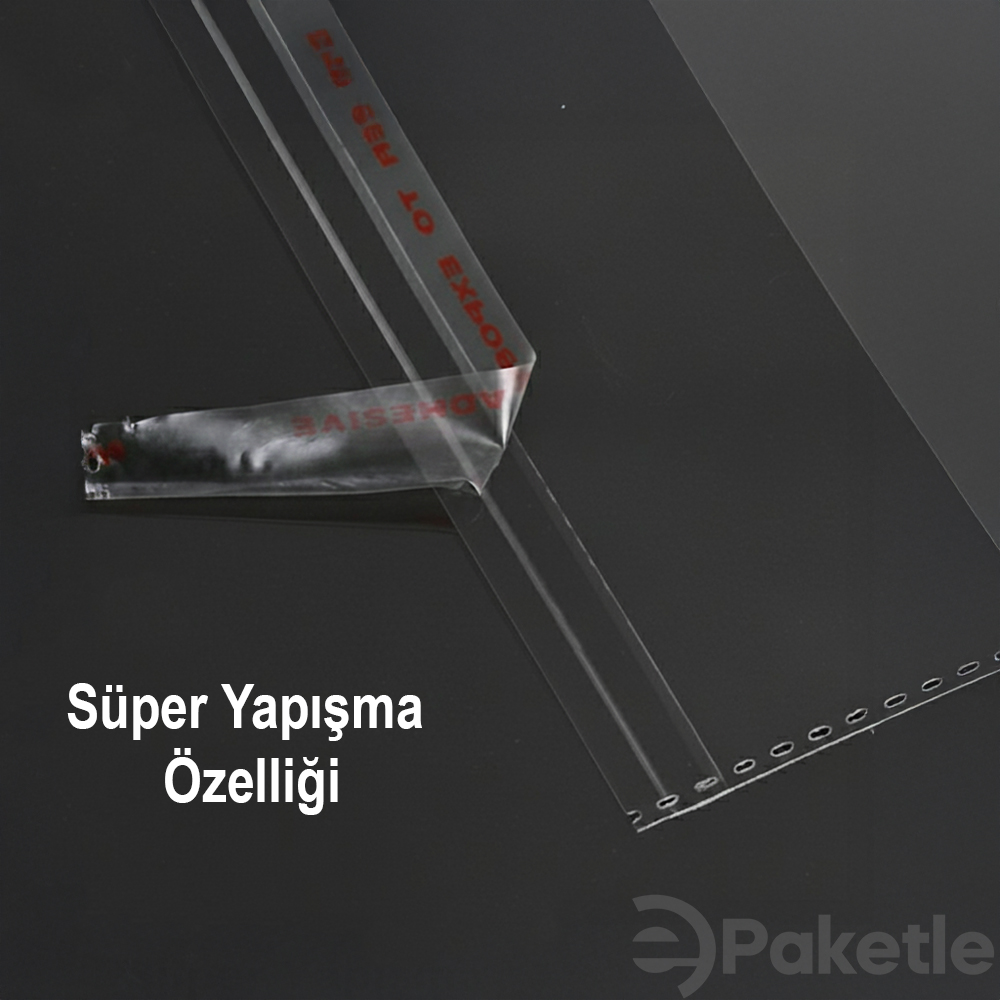 Yapışkan Bantlı Jelatin Poşet, ürünlerinizi düzenli, şık ve pratik bir şekilde paketlemeniz için ideal bir ambalaj çözümüdür.